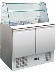 Ez a praktikus salátahűtő ideális választás éttermeknek és egyéb vendéglátóipari egységeknek, ahol a salátahűtő jól látható helyen van az üzlethelységben. A salátahűtő egyenes üvegű felépítménye könnyen tisztítható és stílusos megjelenést kölcsönöz éttermének. A felpéítmény felső részén egy üveg polc is található, mely még praktikusabbá teszi a termék használatát. Az salátahűtő alsó részén elhelyezett hűtőegység pedig gondoskodik arról, hogy az összes alapanyaga és készterméke megfelelő hőmérsékleten tartásáról. Az egyszerű hozzáférhetőséget biztosítja még a termék két nagy ajtaja, melyen keresztül könnyű a termékek ki és bepakolása, legyen szó akár kicsi akár nagy méretű hozzávalókról.