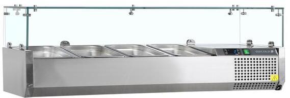 A VK vitrin hűtők nagyszerű kiegészítői a gasztro pultoknak, mivel minden szükséges előkészítő alapanyag könnyen elérhetővé válik. GN1/4 és GN1/6 edényekhez alkalmas (nem tartozék). A hűtő SS304 rozsdamentes acélból készült üveg tálcafedéllel az ételek védelmére. Ideális pizzériákba, gyorséttermekbe és szendvicsbárokba.